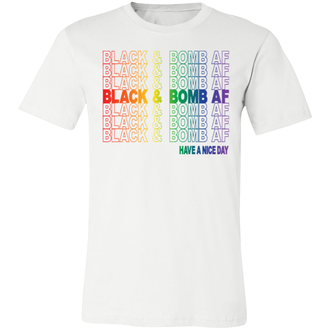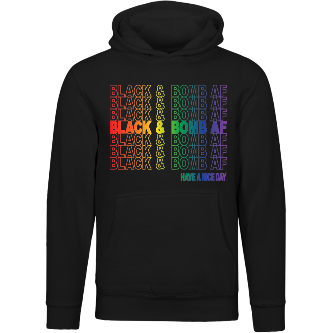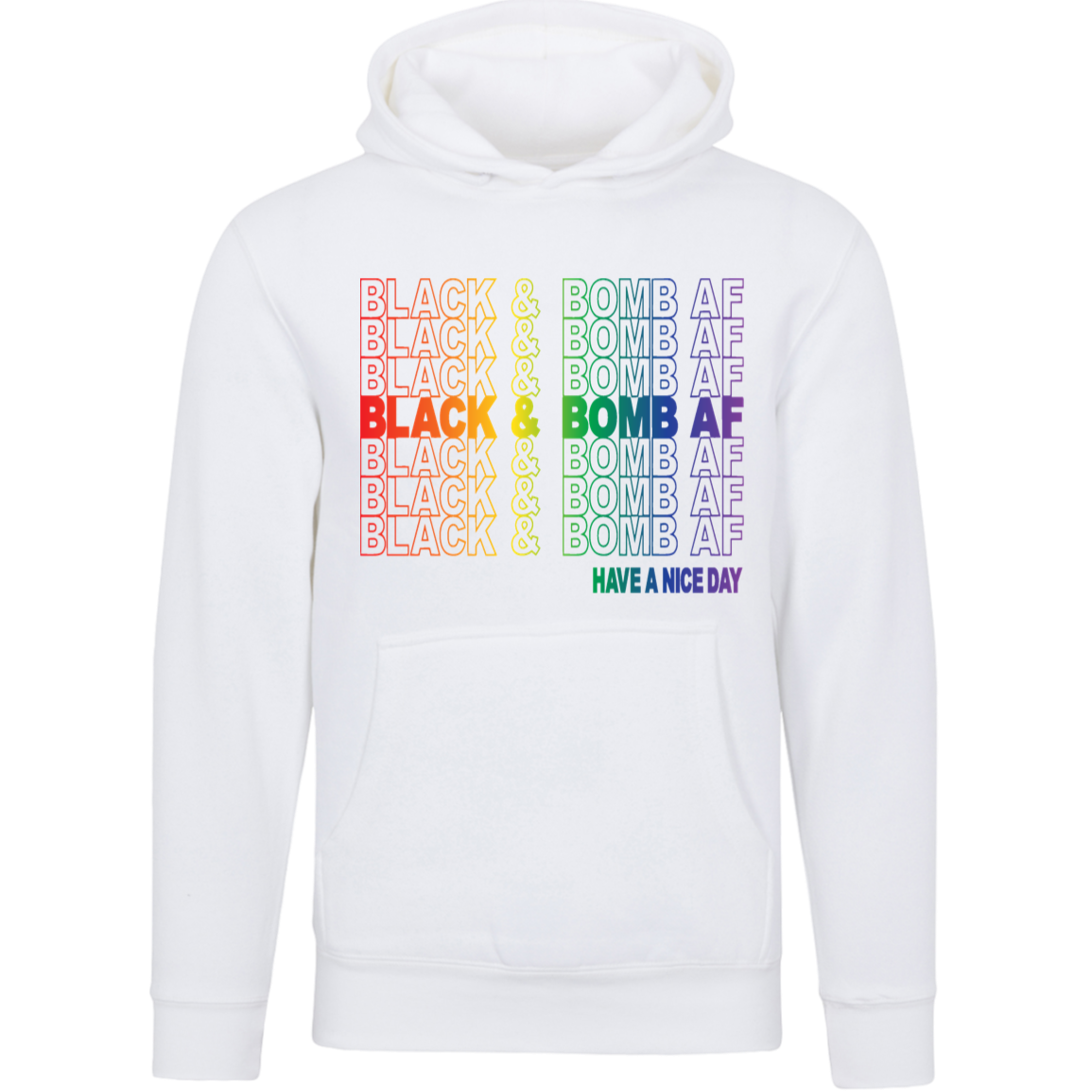 Make a bold statement with the "Black & Bomb AF" design. This powerful declaration of confidence and excellence is perfect for those who walk in their power and make their presence known. Available in two striking styles—the Rainbow Pride Edition for a vibrant, unapologetic look and the Classic Red Statement for a bold and commanding presence. Whether you choose the tee or hoodie, this design is a must-have for those who show up unapologetically Black & Bomb AF.
