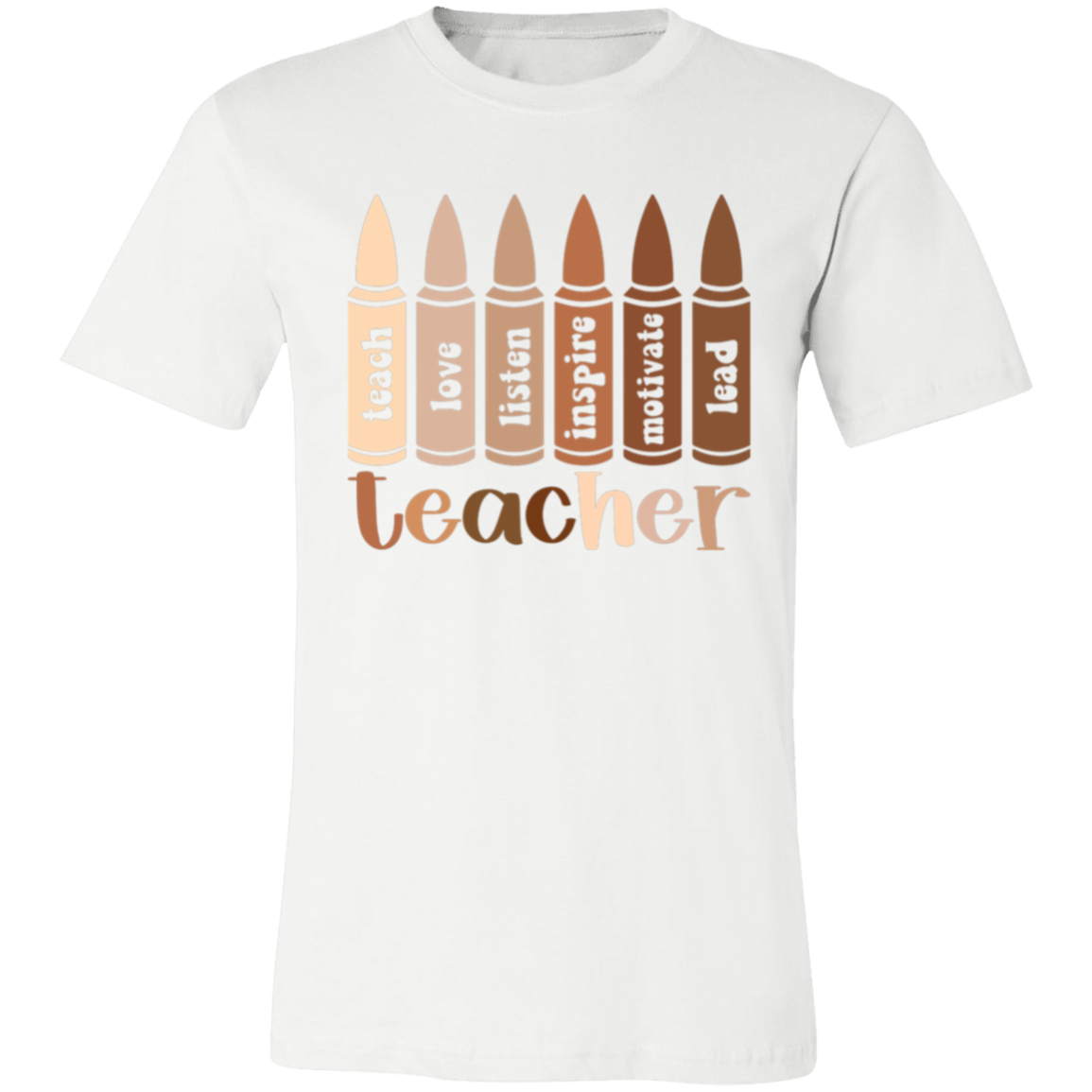 Celebrate the beauty of diversity and the power of teaching with the "Teach. Love. Lead." design. Featuring vibrant shades of crayons and words that embody an educator's mission, this design is a tribute to the teachers who inspire, motivate, and shape our future. Available in tees and hoodies, it’s perfect for the classroom and beyond.